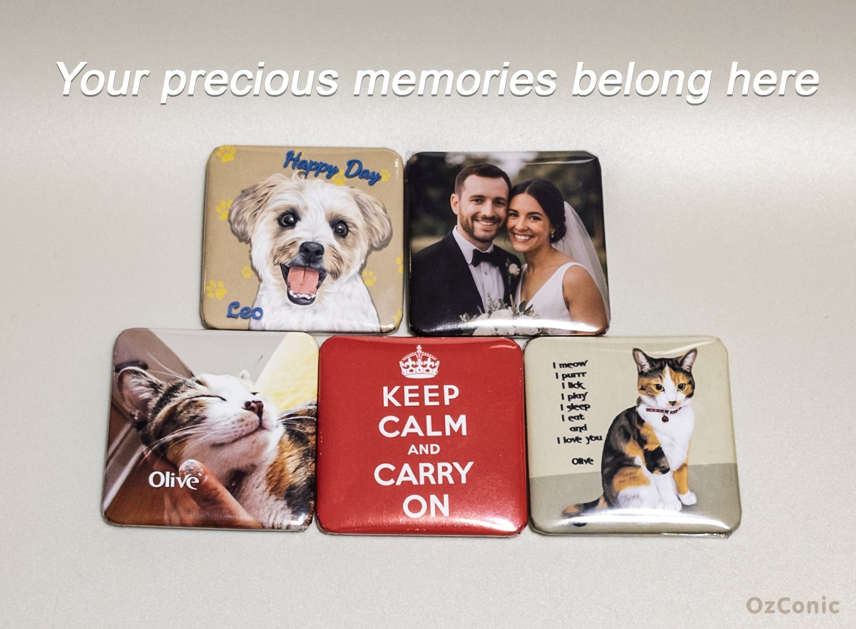 Customized 5cm(1.97inch) Square Photo, Pic Magnets, Display your precious memories here, Family, friends, furry friends, Characters, Art